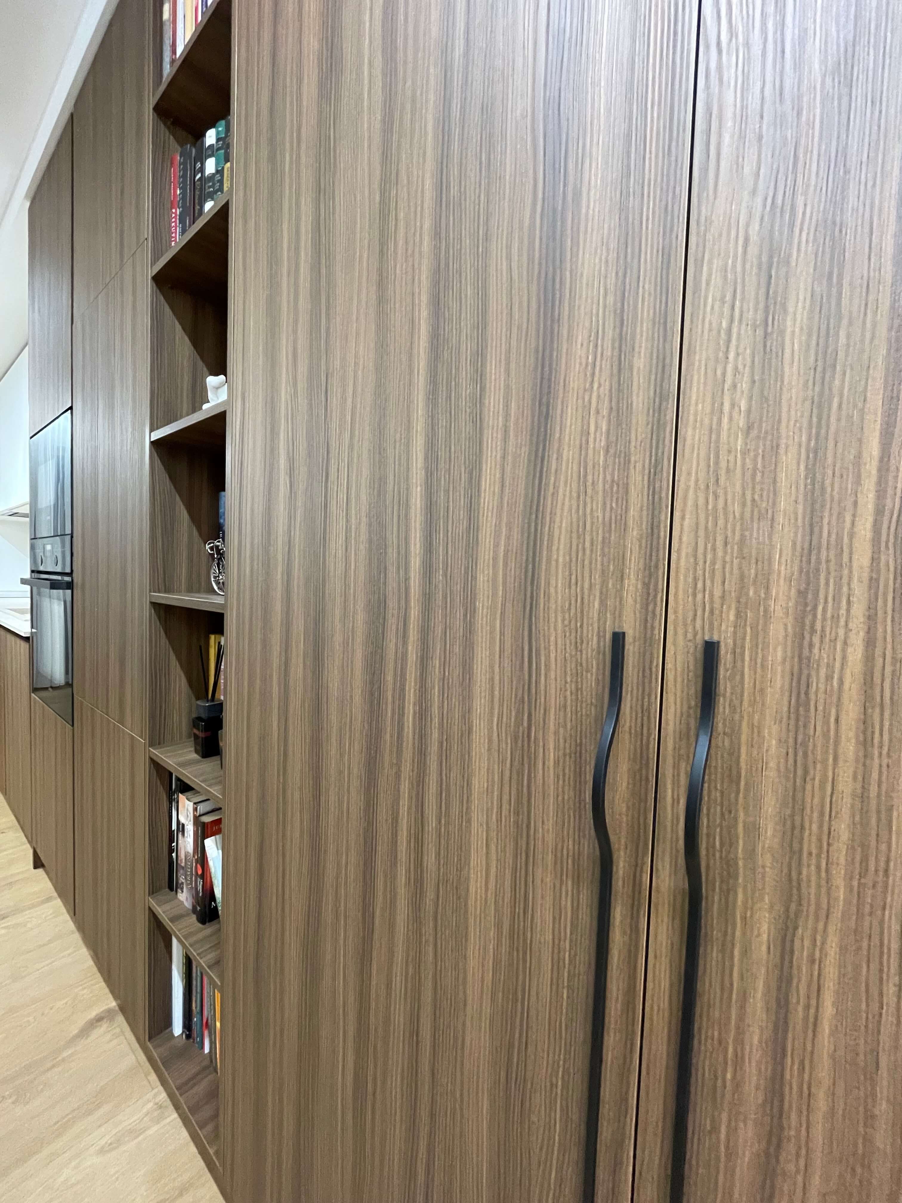 Wall Cabinet: a spacious, roomy wall cabinet connected with the kitchen furniture, extending all the way to the corridor.